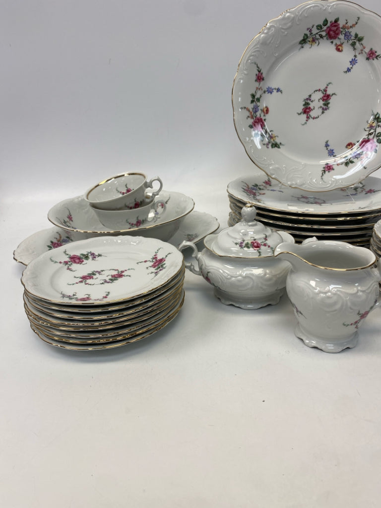 White Pink Roses Dishes