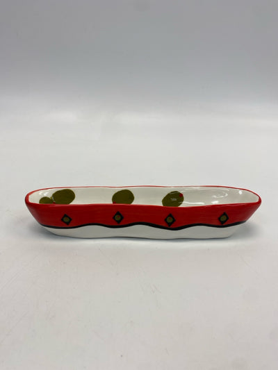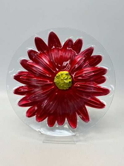 Sonoma Clear Red/Gold Flowers Glass Serving Piece