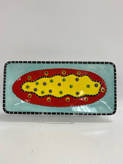 Red/Black Blue/Yellow Dots/Stripes Ceramic Serving Piece