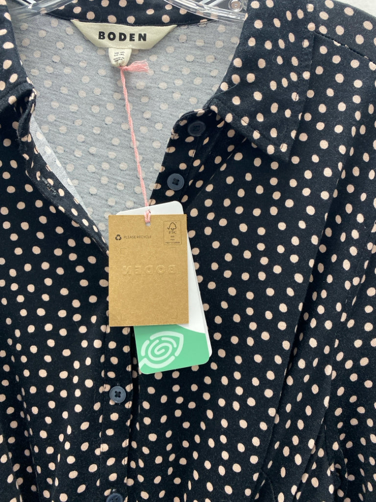 Boden Size 14L Black Pink Dots V Neck Ladies Dress