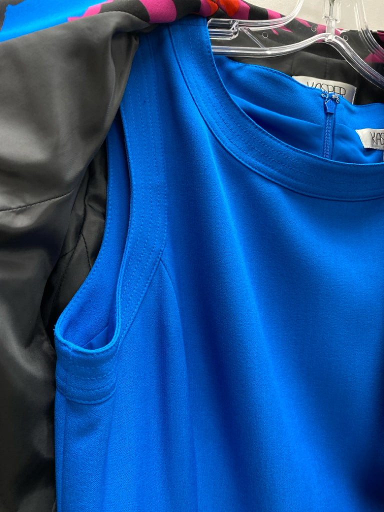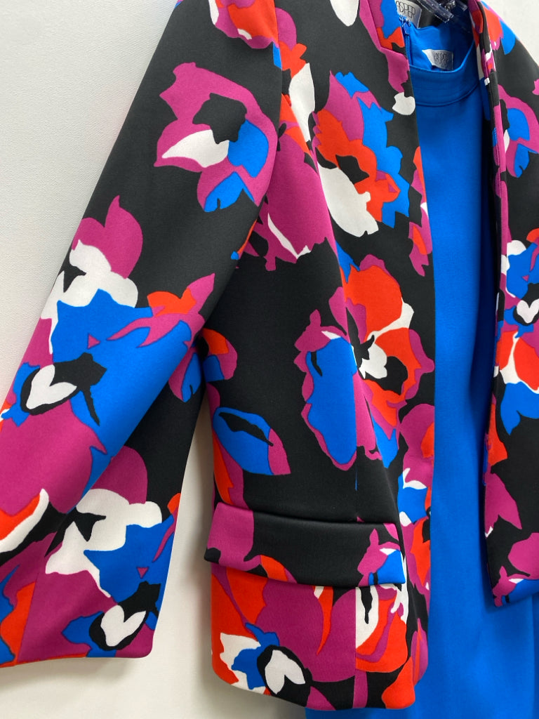 Kasper Size 14 Black Red/Blue Flowers Ladies 2pc Dress