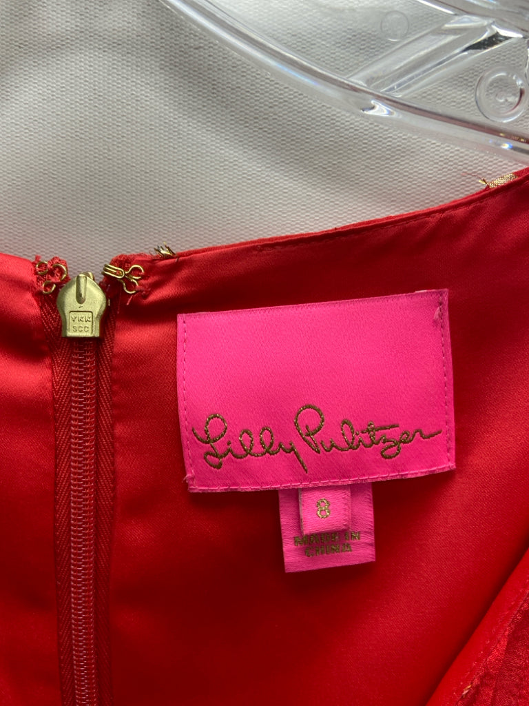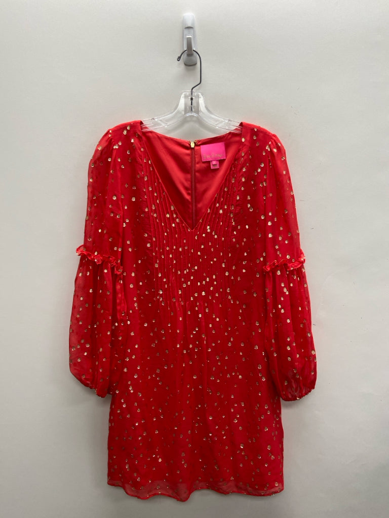 LILLY PULITZER Size 8 Red Gold Polka Dot Ladies Dress