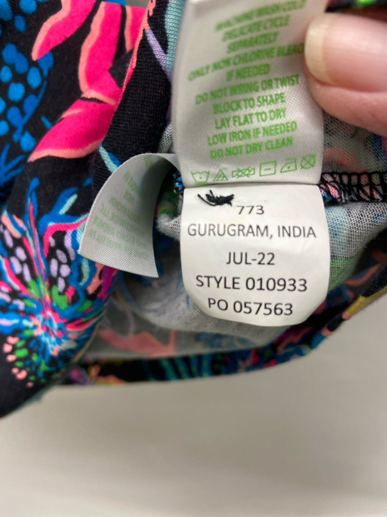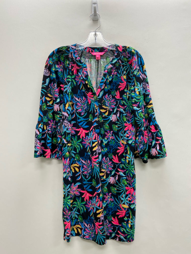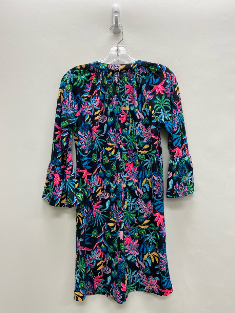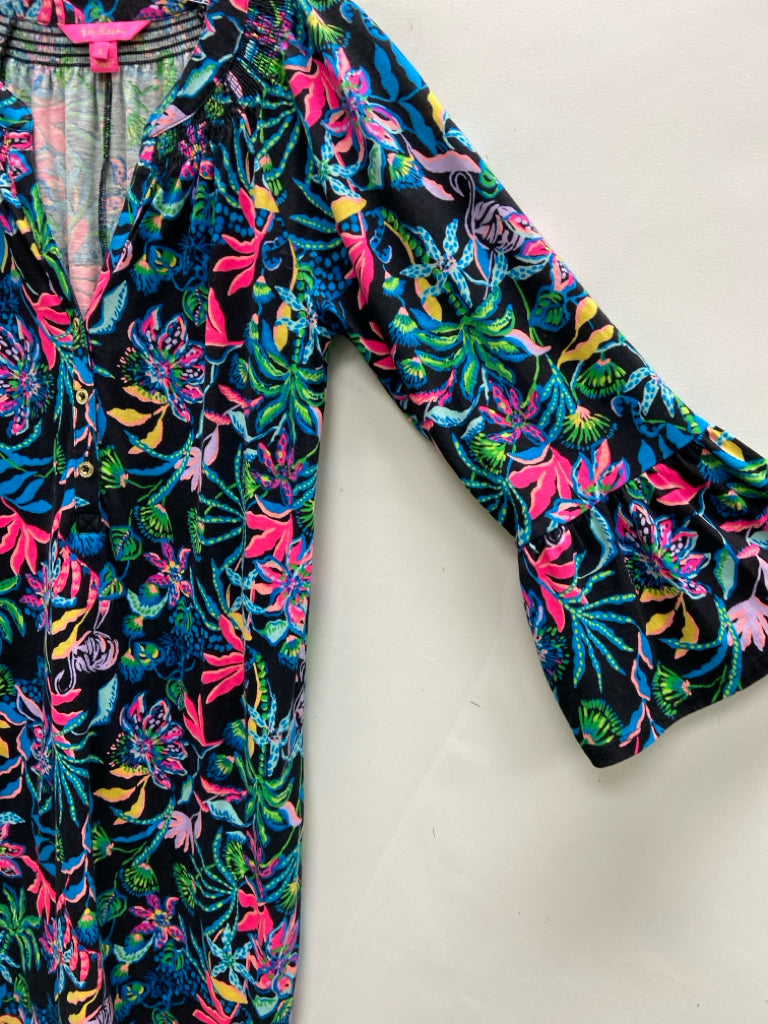 LILLY PULITZER Size S Black Blue/Pink Flowers Bell Sleeves Ladies Dress
