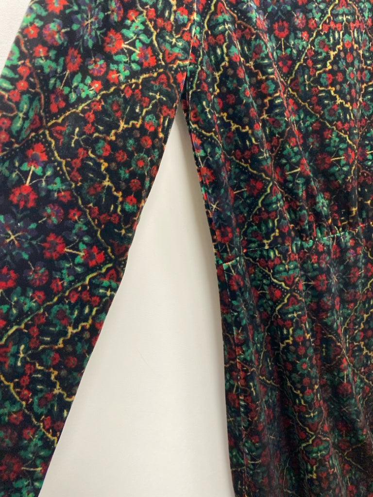 LOFT Size 8 Black/Green Red/Gold Flowers Velour Ladies Dress