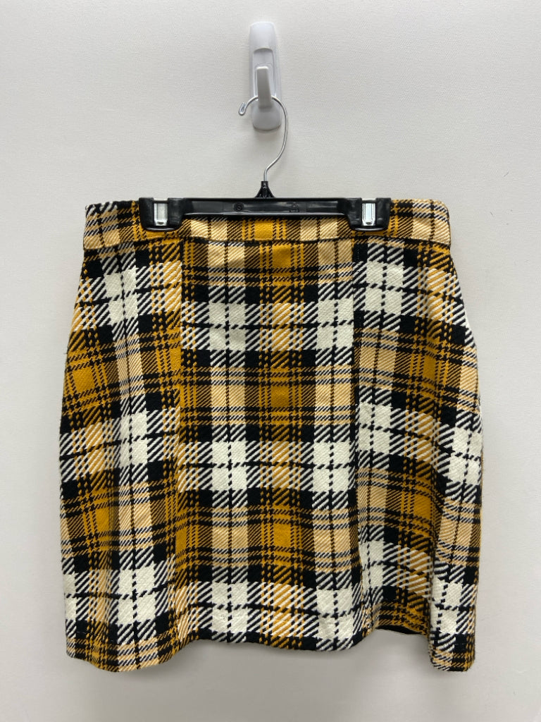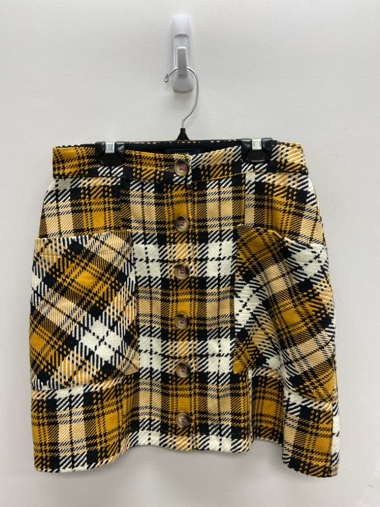 Maeve Size 4 Marigold White/Black Plaid Button Up Ladies Skirt