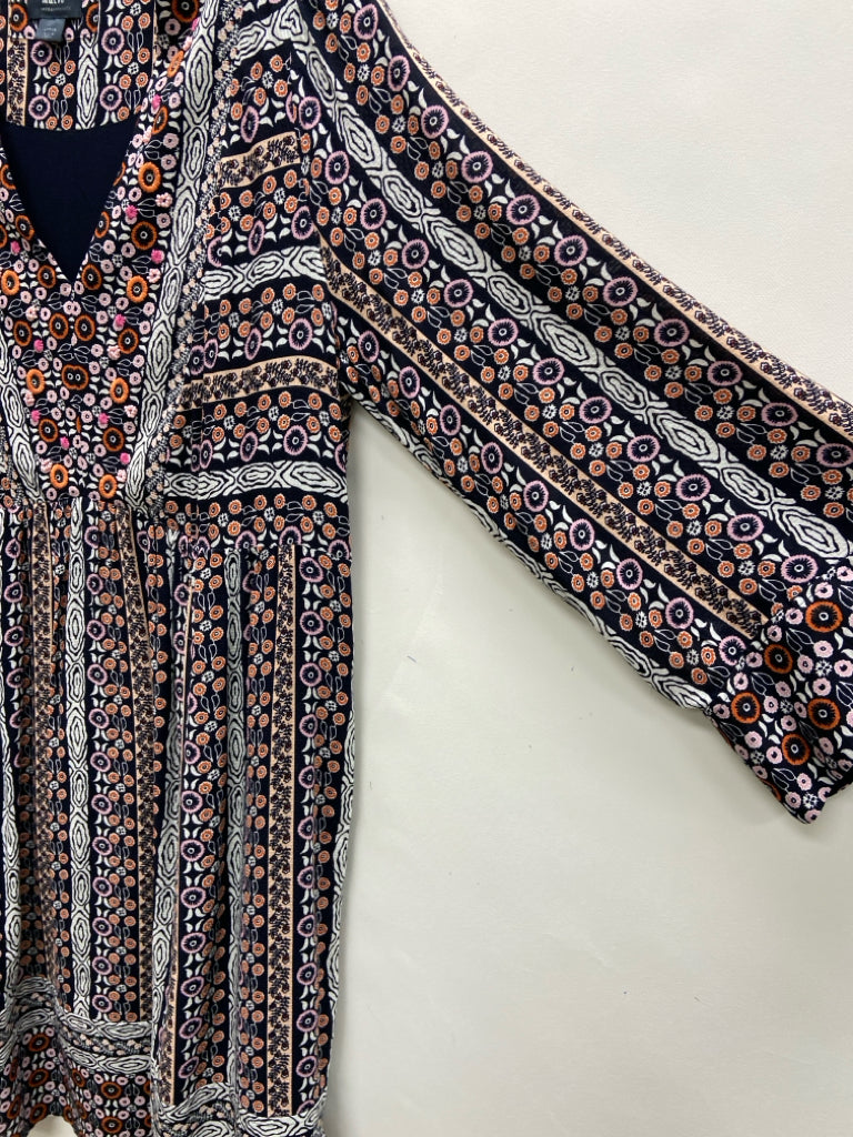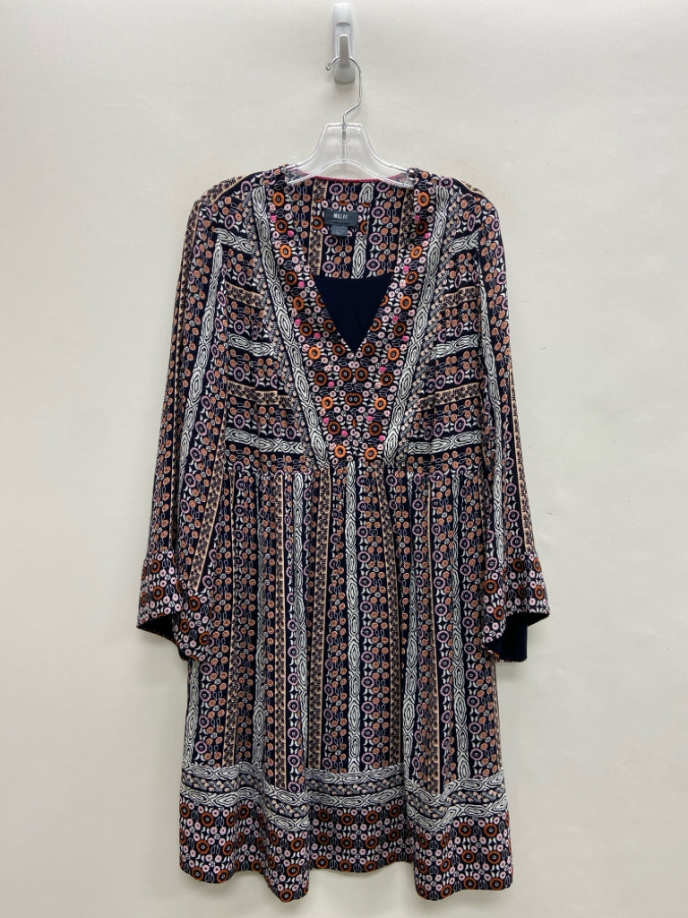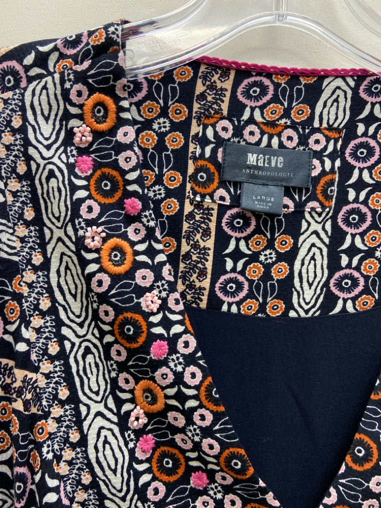 Maeve Size L Navy/White Orange/Pink Stripes/Flowers V Neck Ladies Dress