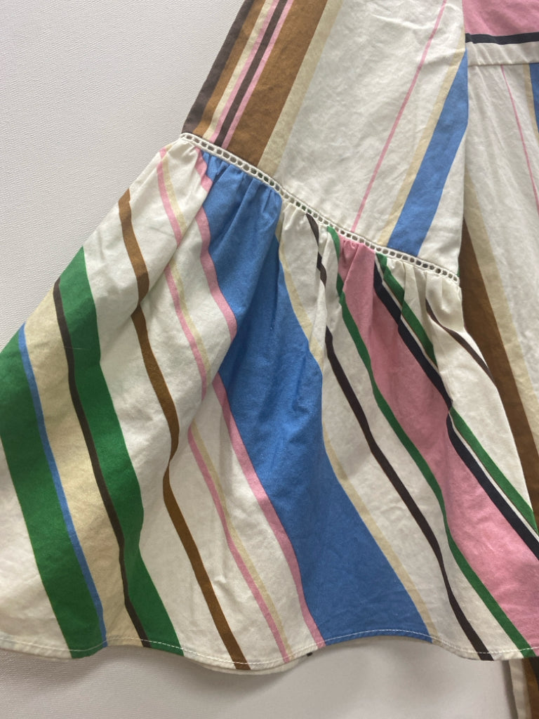 Massimo Dutti Size 4 White Blue/Multi Stripes Bell Sleeves Ladies Dress