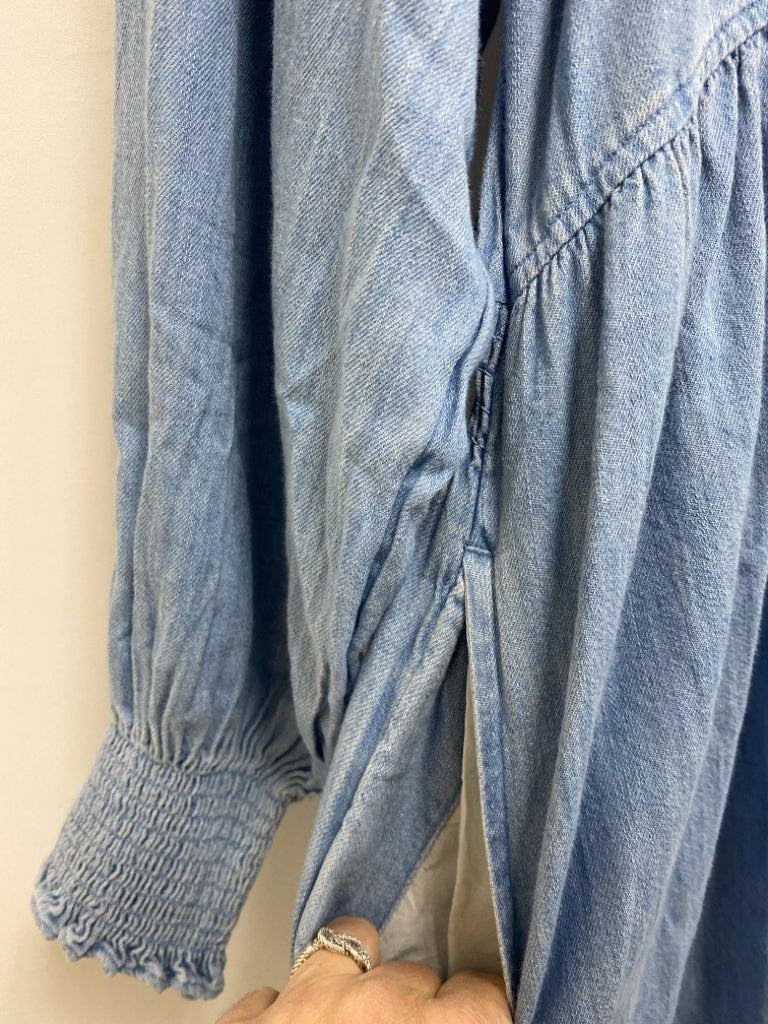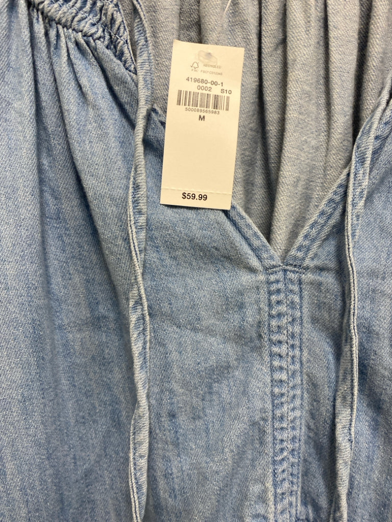 NWT Old Navy Size M Light Blue Smocking V Neck Chambray Ladies Dress