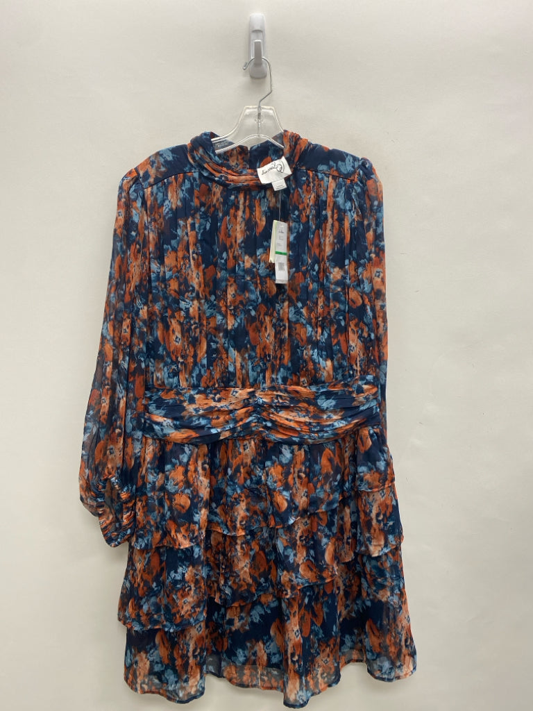 Sam Edelman Size L Navy Terra Cotta Ruched Mock Neck Ladies Dress