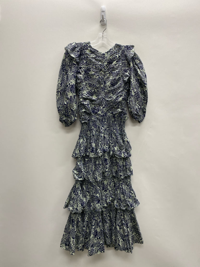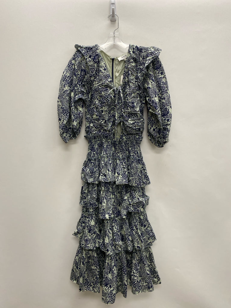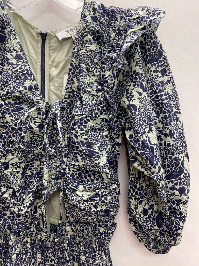 Sea New York Size S Navy Sage Flowers Puff Sleeve Ladies Dress