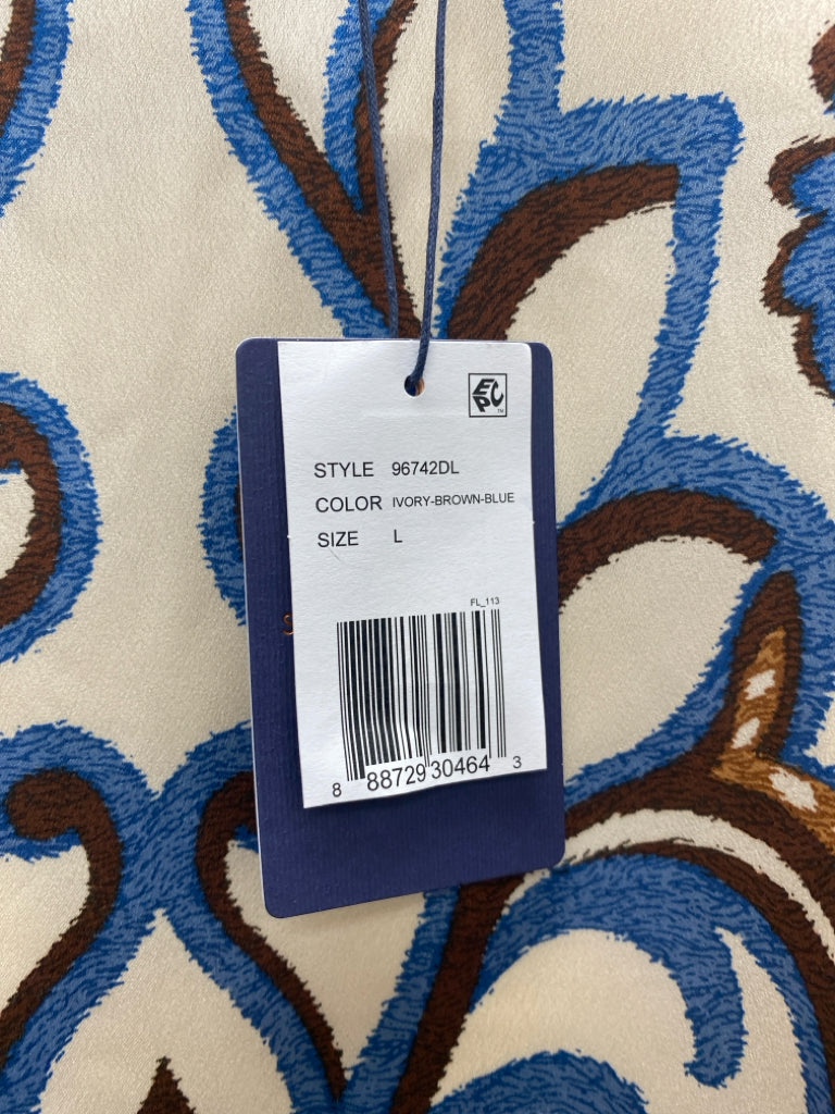 Skies Are Blue Size L Cream/Blue Brown Damask Ladies Dress