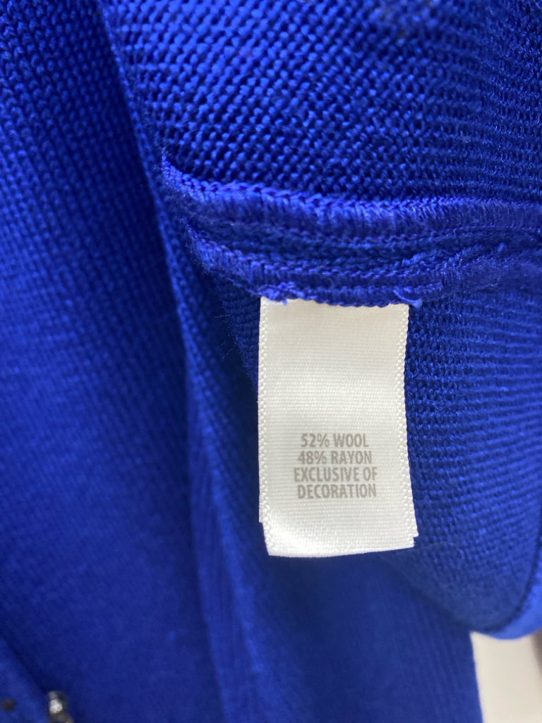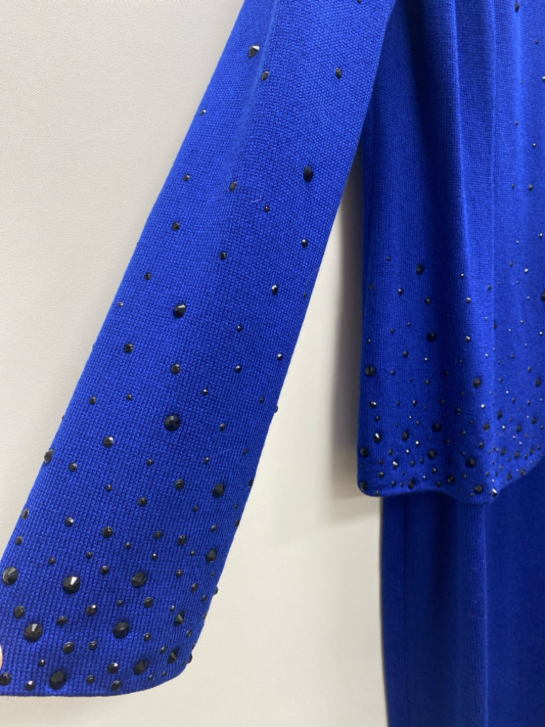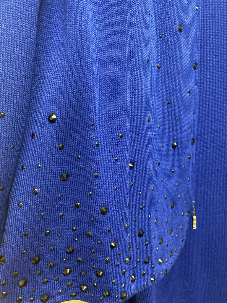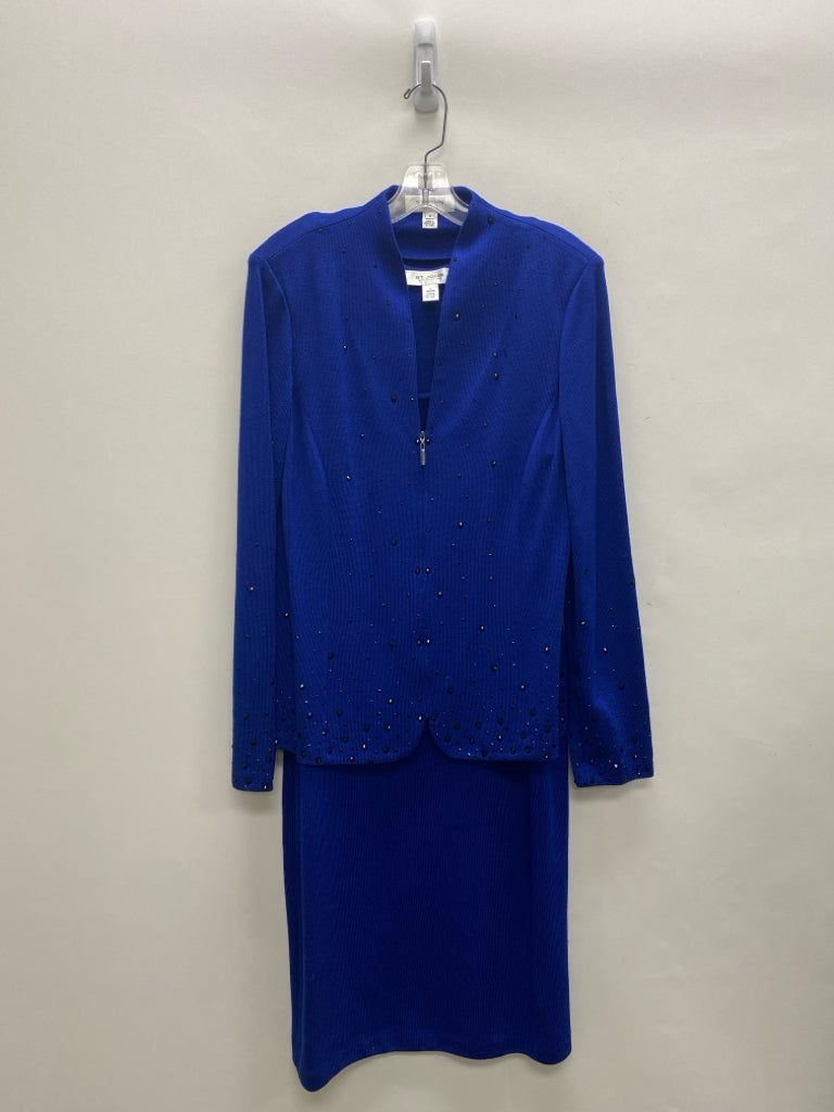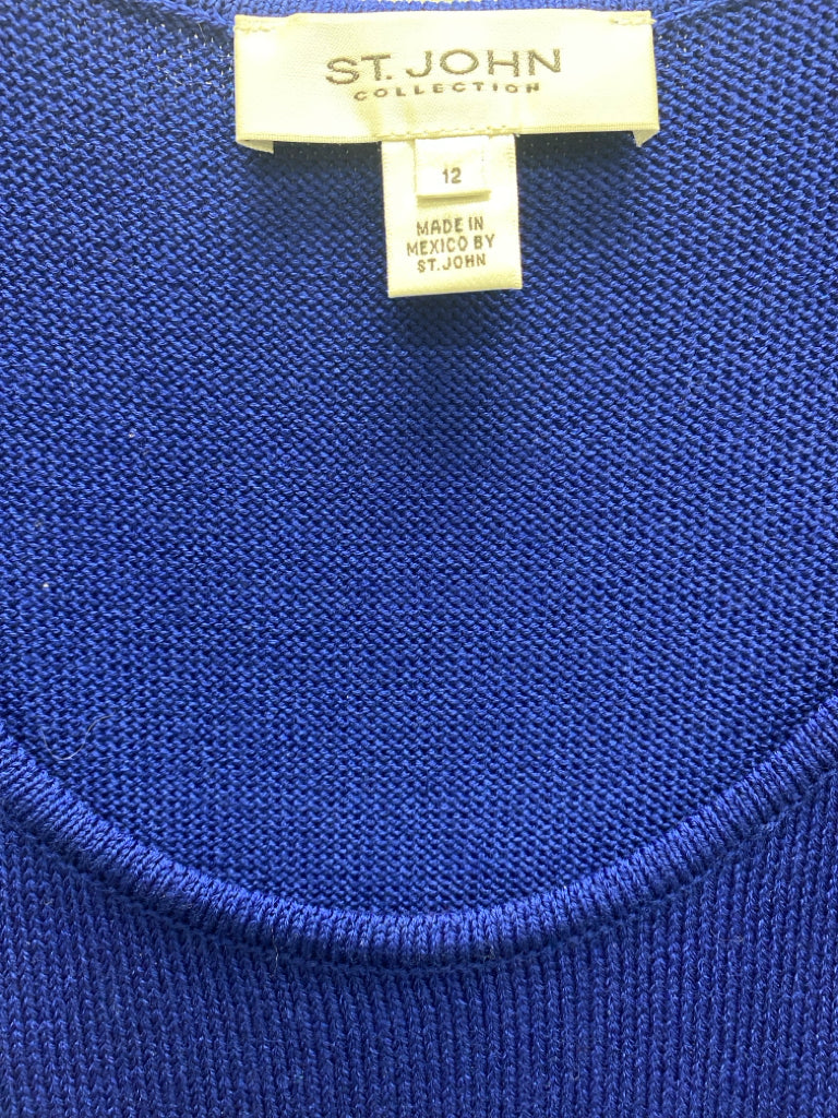 ST. JOHN Size 12 Dark Blue Black Studded Sleeveless Wool Blend Ladies Dress