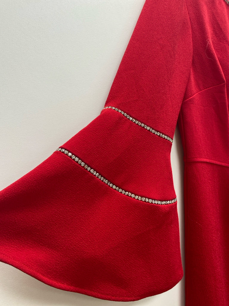 Trina Turk Size 2 Red Jeweled Bell Sleeves Ladies Dress