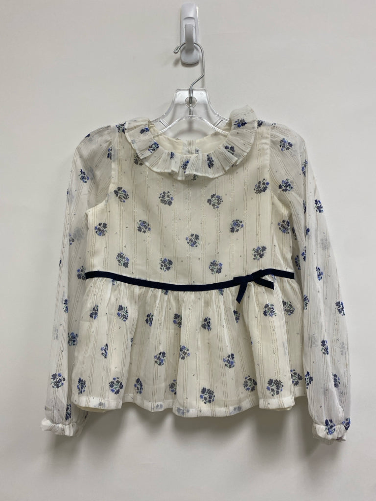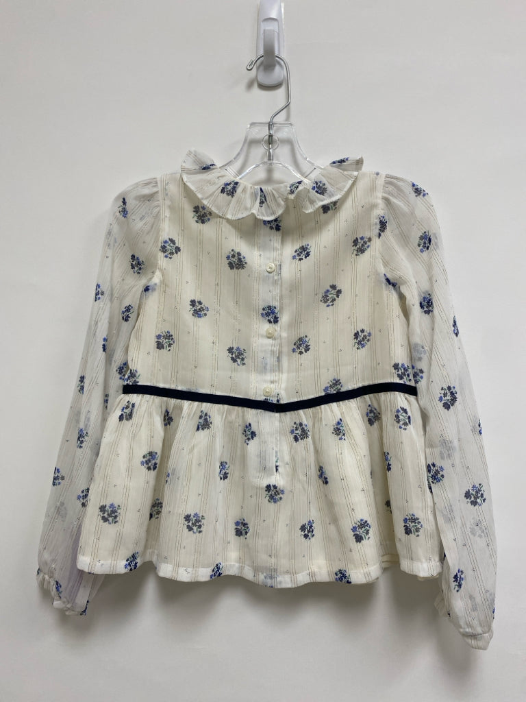 Janie and Jack SIZE 7 White Navy/Gold Stripes/Flowers Girl's Top