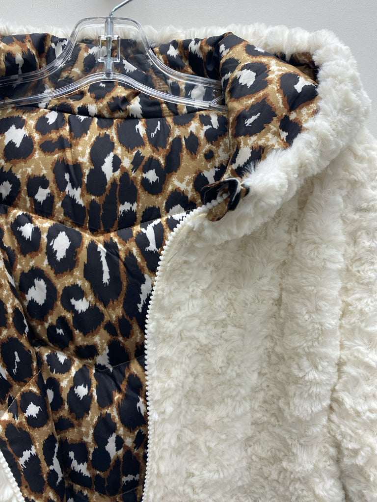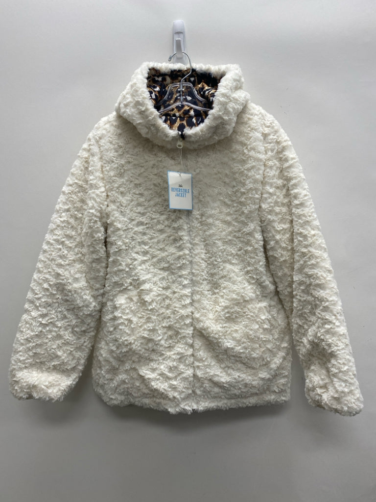 Justice SIZE 12/14 White Reversible Zip Down Faux Fur Girl's Jacket
