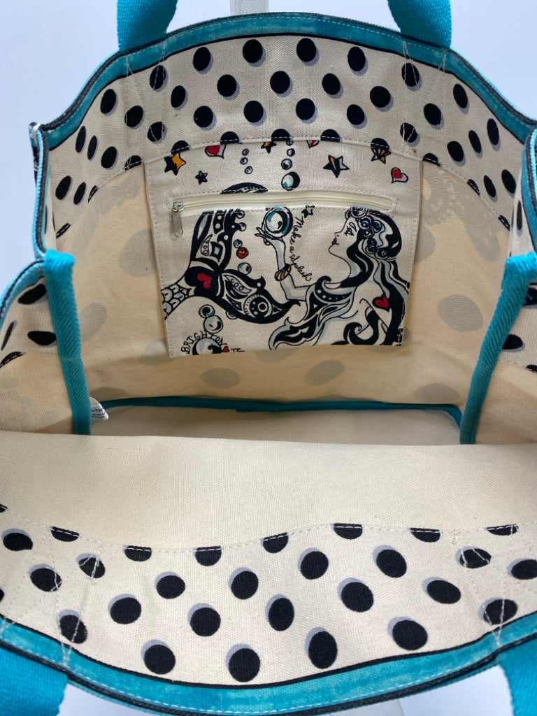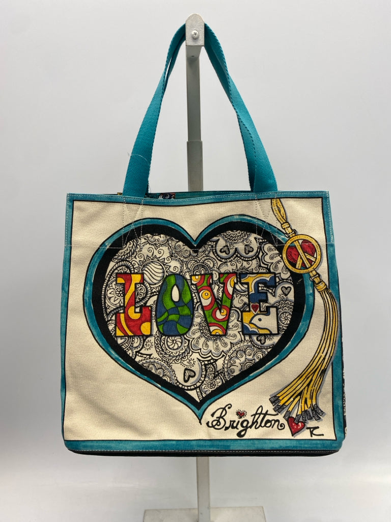 Brighton Cream Turquoise Heart(s) Canvas Tote Bag