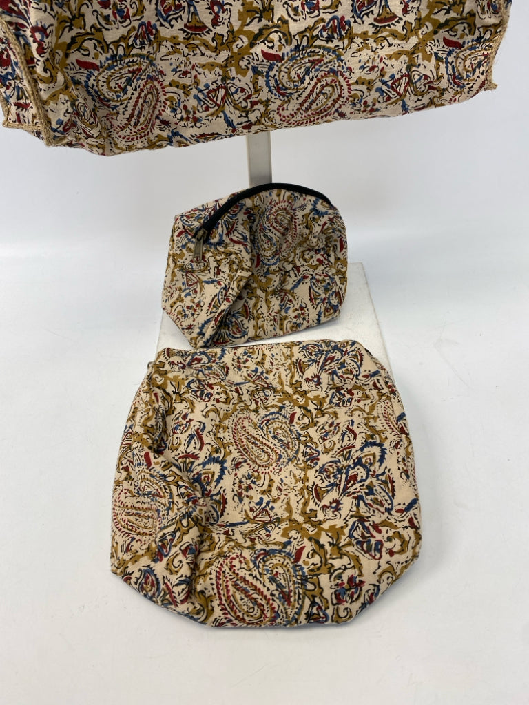 Brown Blue/Red Print Fabric Tote Bag