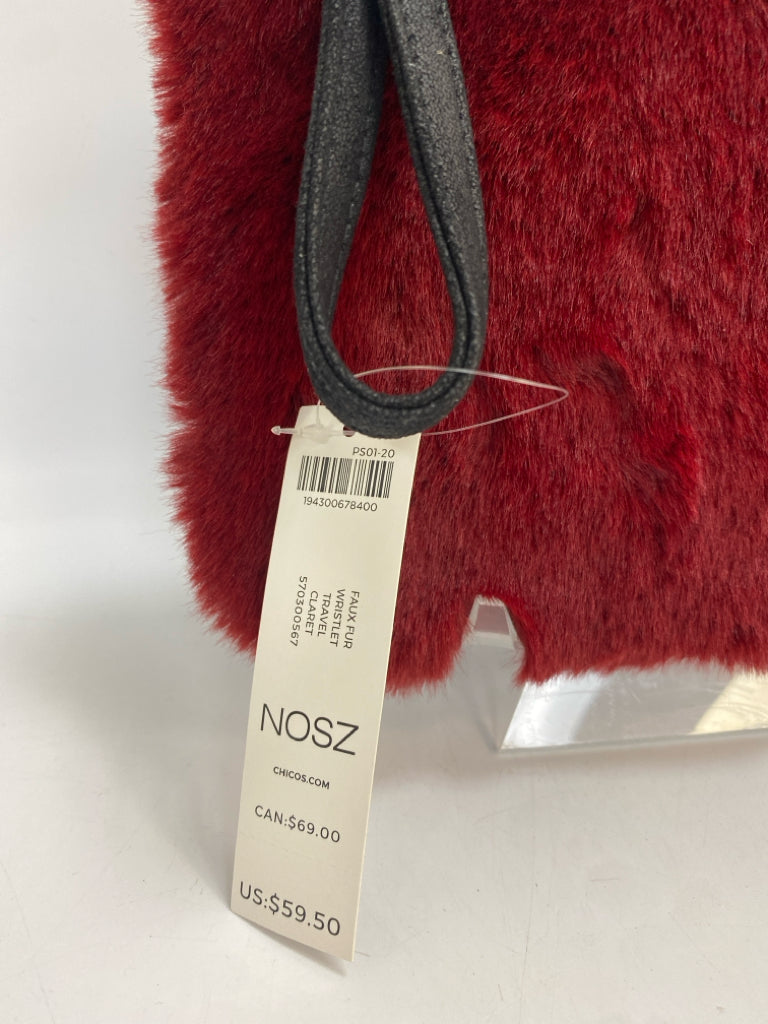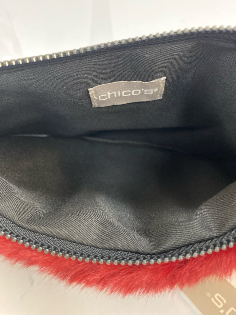 [{"id":41796694278247,"title":"Dark Red","option1":"Dark Red","option2":null,"option3":null,"sku":"5946-2605","requires_shipping":true,"taxable":true,"featured_image":null,"available":true,"name":"Chico's Dark Red Fuzzy Wristlet - Dark Red","public_title":"Dark Red","options":["Dark Red"],"price":1800,"weight":907,"compare_at_price":null,"inventory_management":"shopify","barcode":"03957469","requires_selling_plan":false,"selling_plan_allocations":[]}]