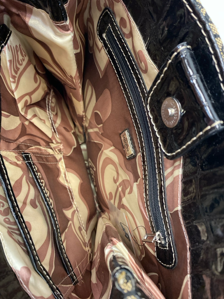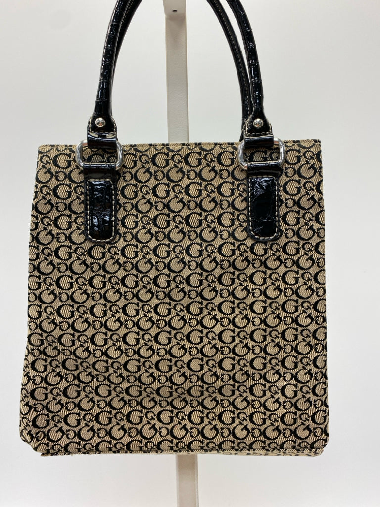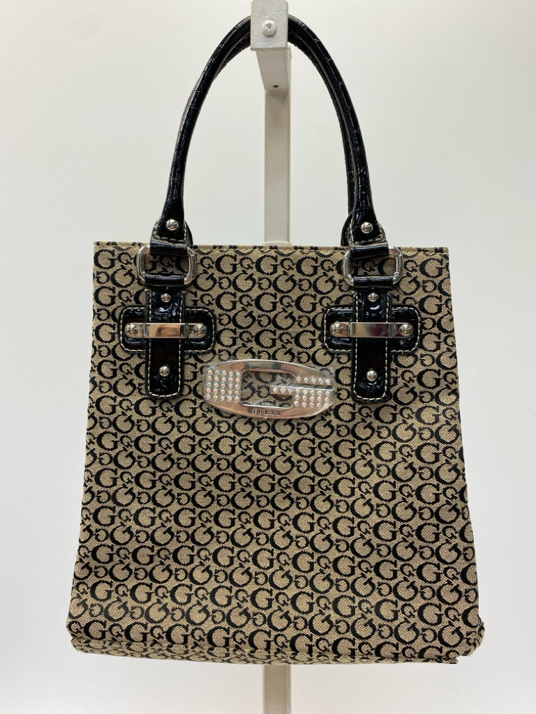 Guess Tan Black Signature Fabric Handbag
