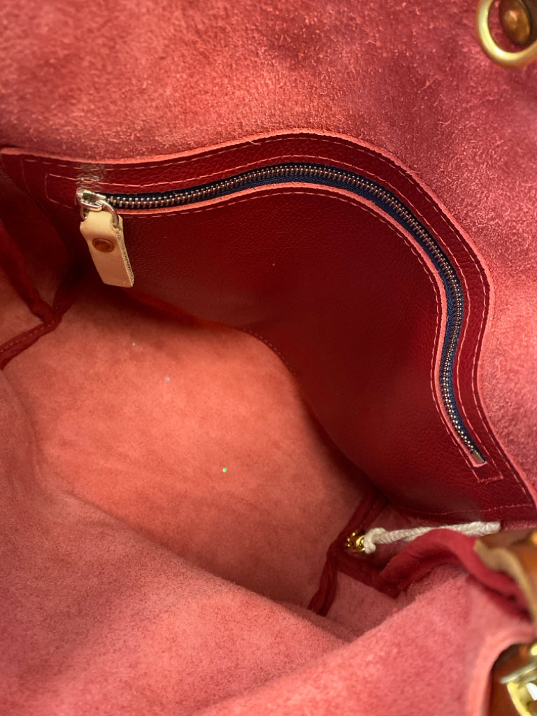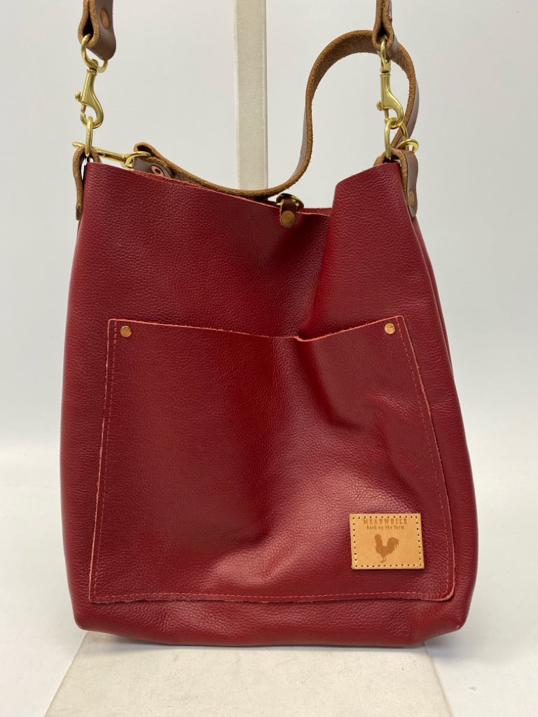 Meanwhile Back on the Farm Dark Red Leather Handbag