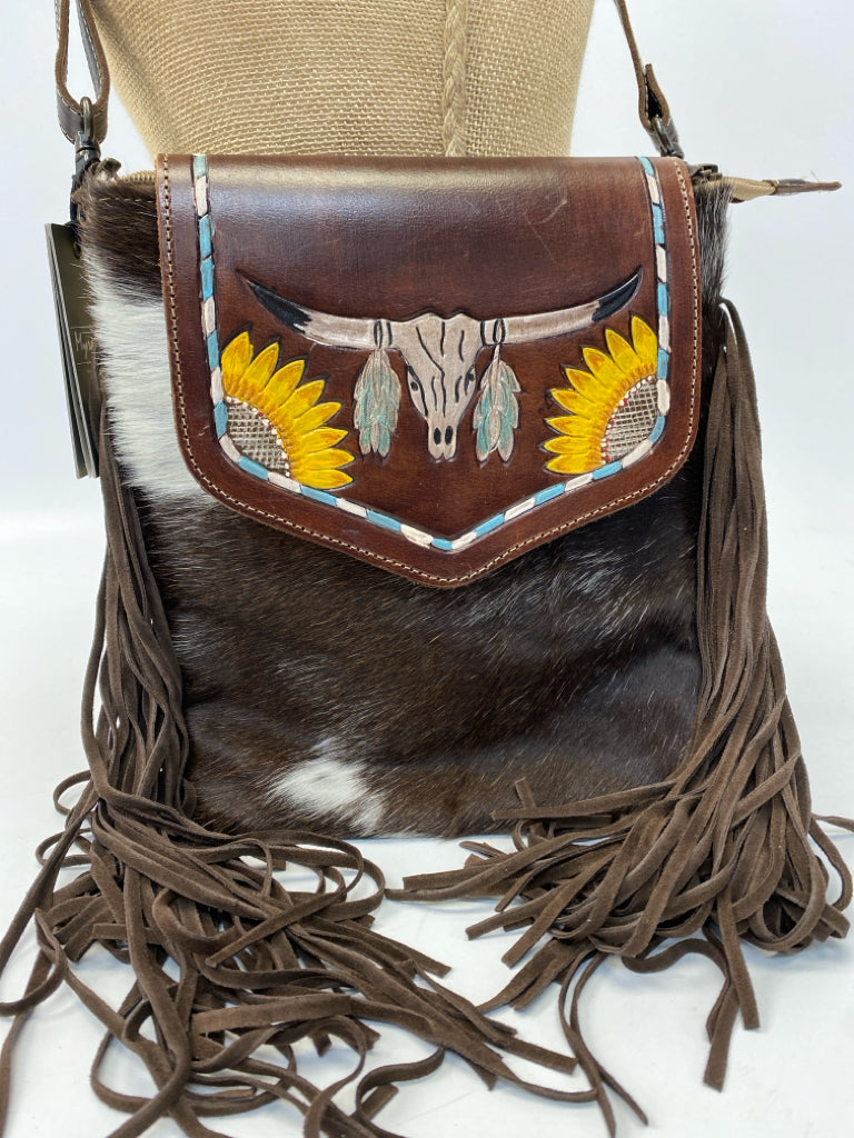 Myra Bag Dark Brown Southwestern Faux Fur Crossbody