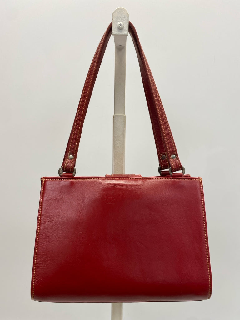 Red Silver Buckle(s) Embossed Handbag
