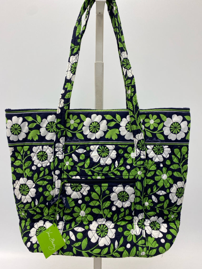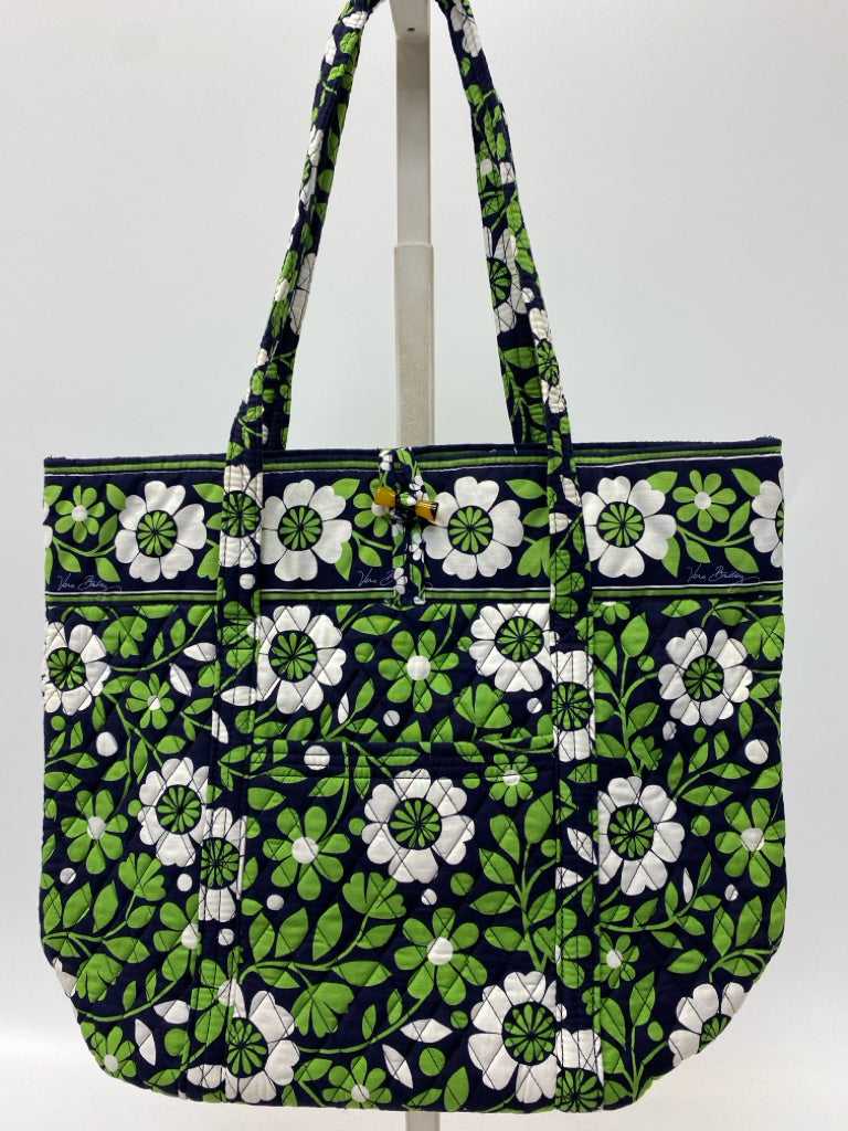 Vera Bradley Navy/Green White Flower(s) Fabric Tote Bag