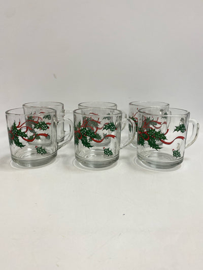 Anchor Hocking Clear Green/Red Holly Berries Glass Christmas
