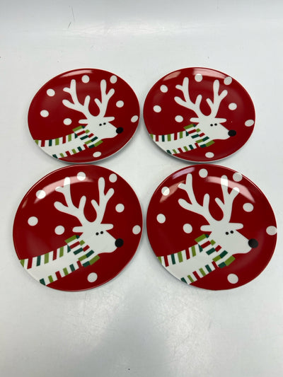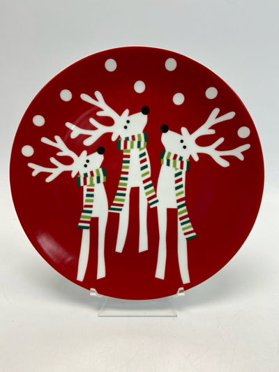 Crate/Barrel Red White Reindeer Christmas
