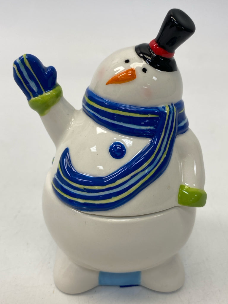 White Blue Snowman Ceramic Winter