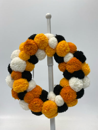 Orange/Black White Pom Poms Halloween