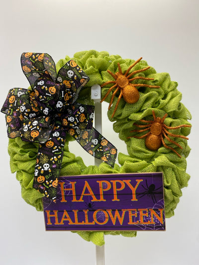 Lime Green Orange/Multi Spider Burlap Halloween