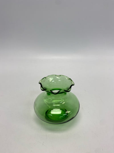 Green Clear Ruffles Glass Vase