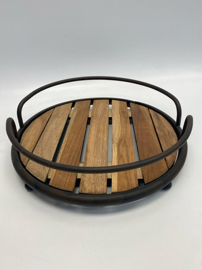 Natural Dark Brown Wood/Metal Tray