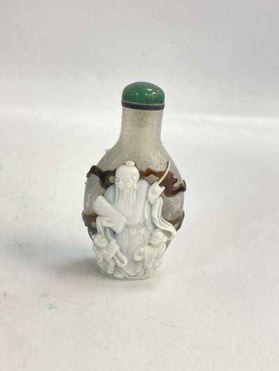 Frosted Brown/White People Glass Bottle