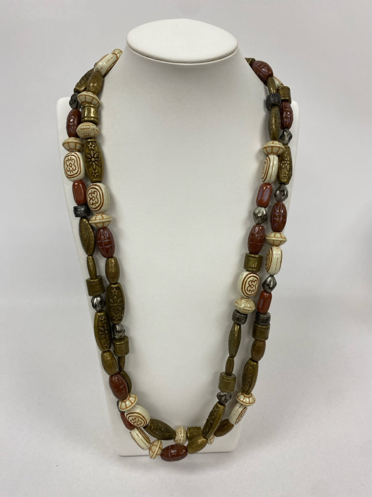 Bronze Color Cream/Brown Chunky Necklace