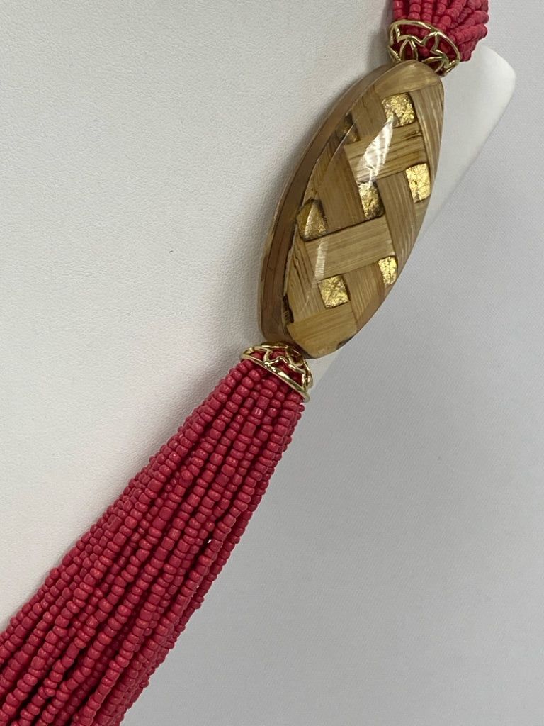 Chico's Dark Coral Tan/Gold Chunky Necklace