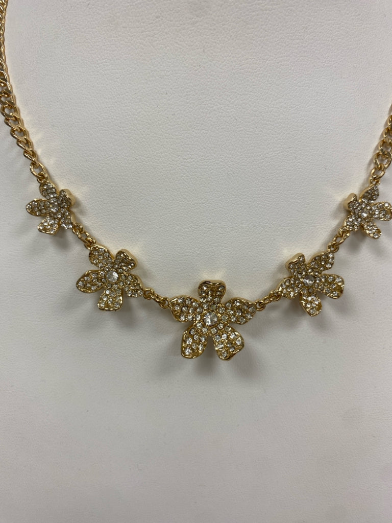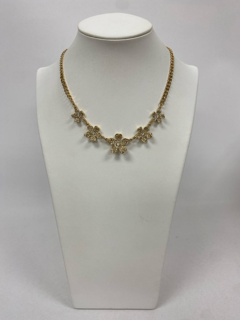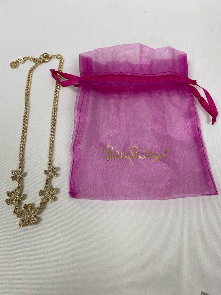 LILLY PULITZER Gold Color Clear Flowers Necklace