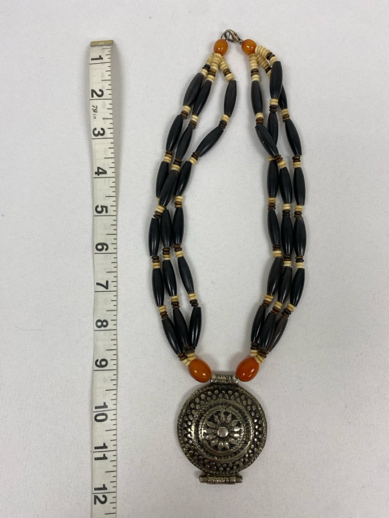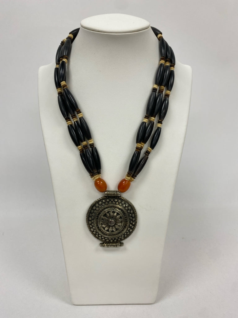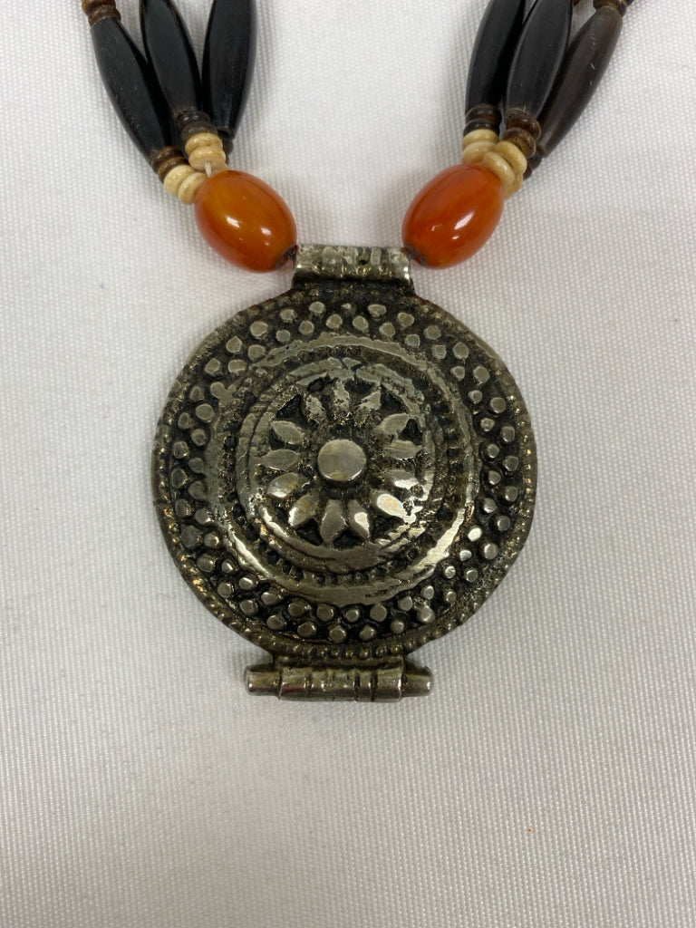 Orange Silver/Black Coin Necklace