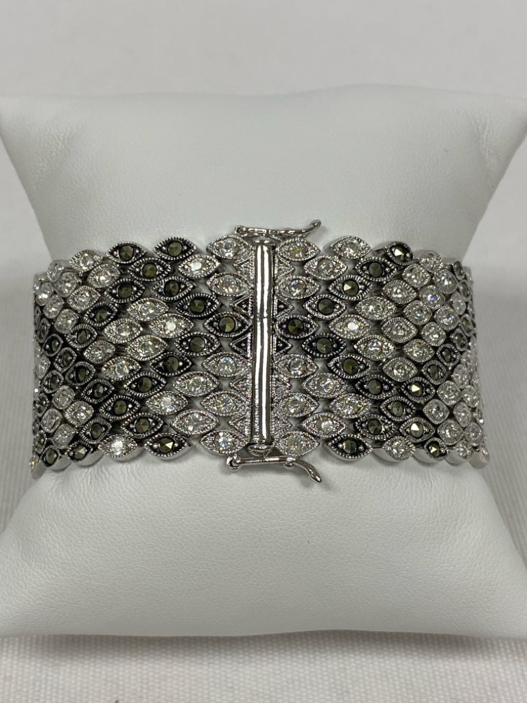 Silver Color Dark Gray Jeweled Bracelet