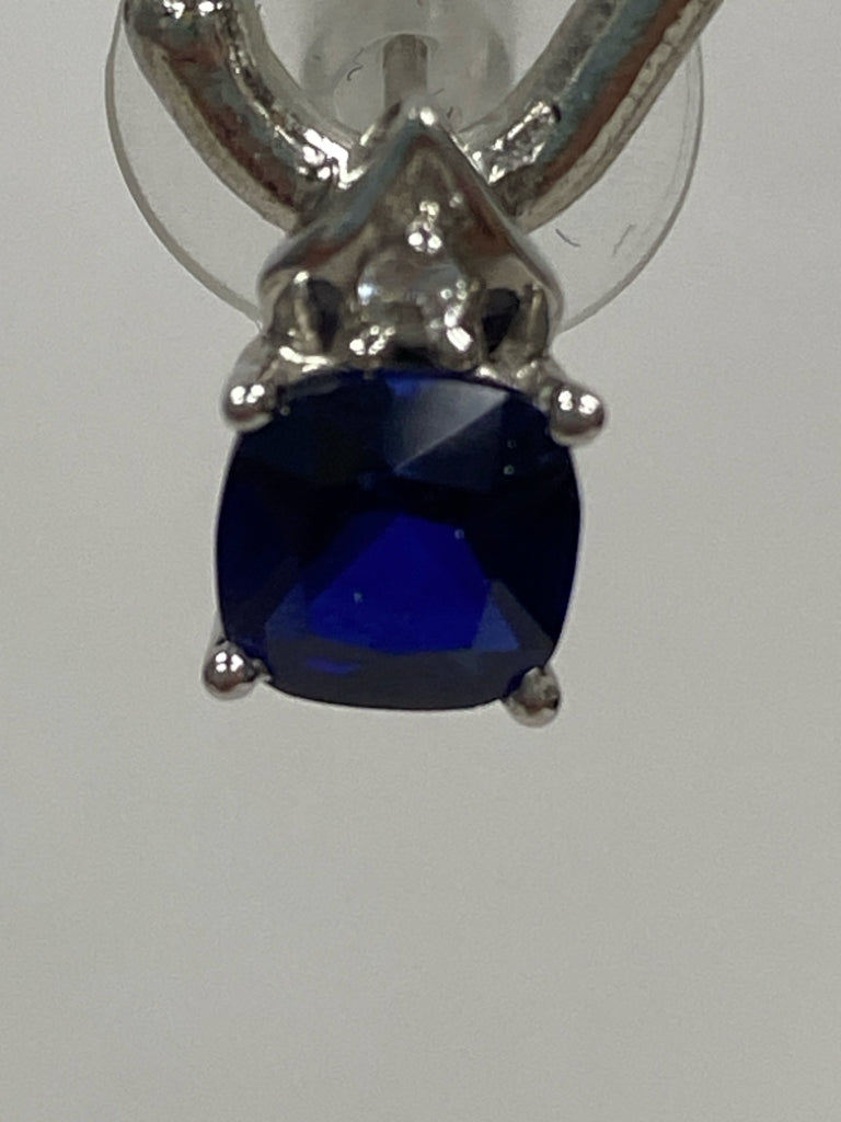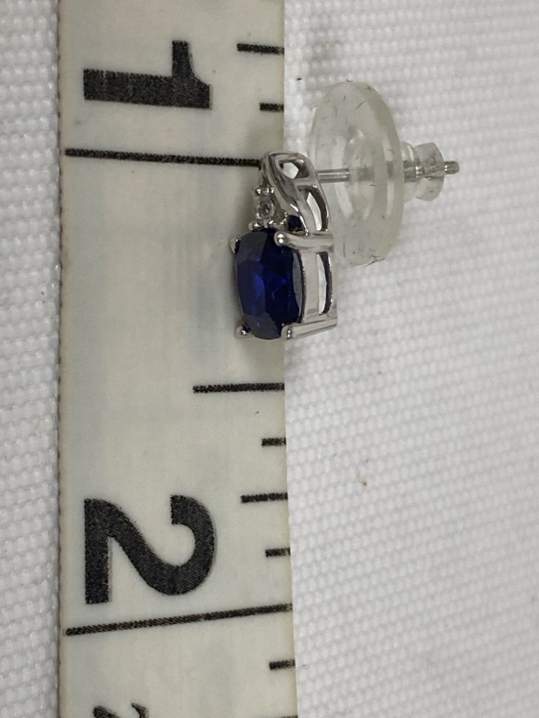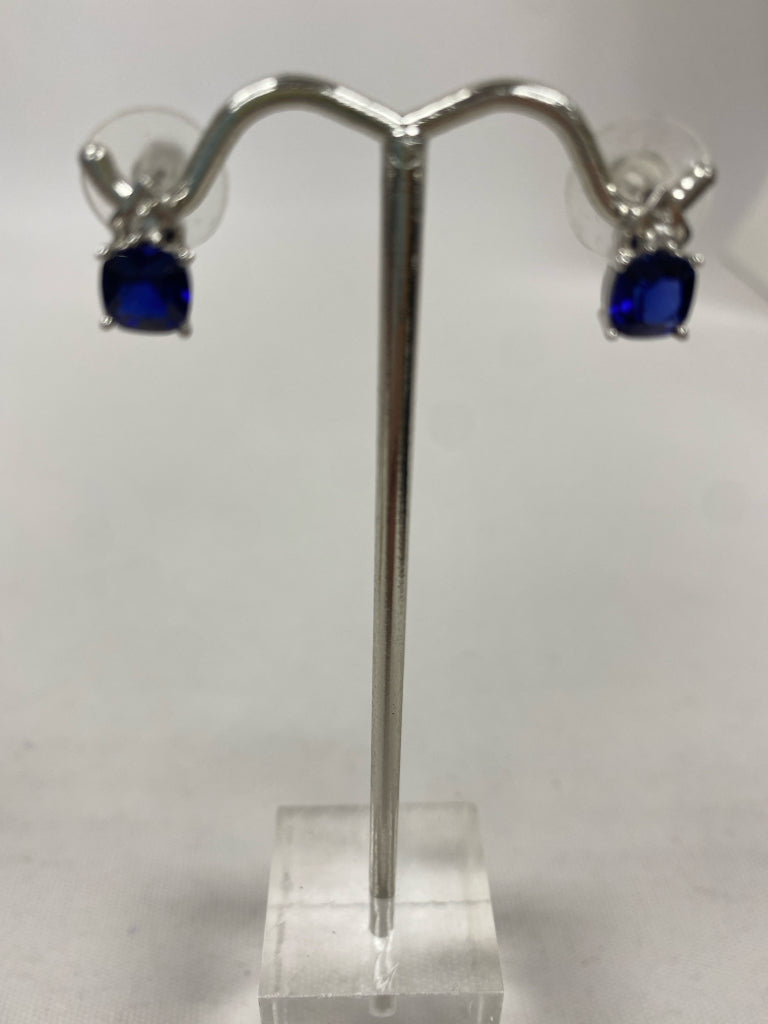 Silver Dark Blue Jeweled Earrings