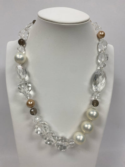 CHAN LUU Taupe Silver/White Beaded Necklace