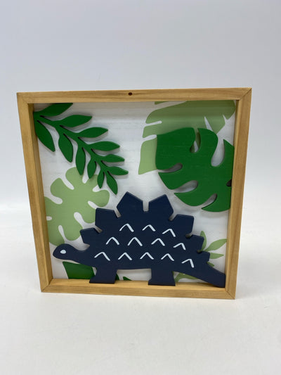 Green Navy Dinosaurs Wood Kids Wall Hanging