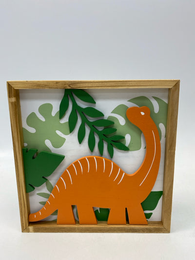 Green Orange Dinosaurs Wood Kids Wall Hanging