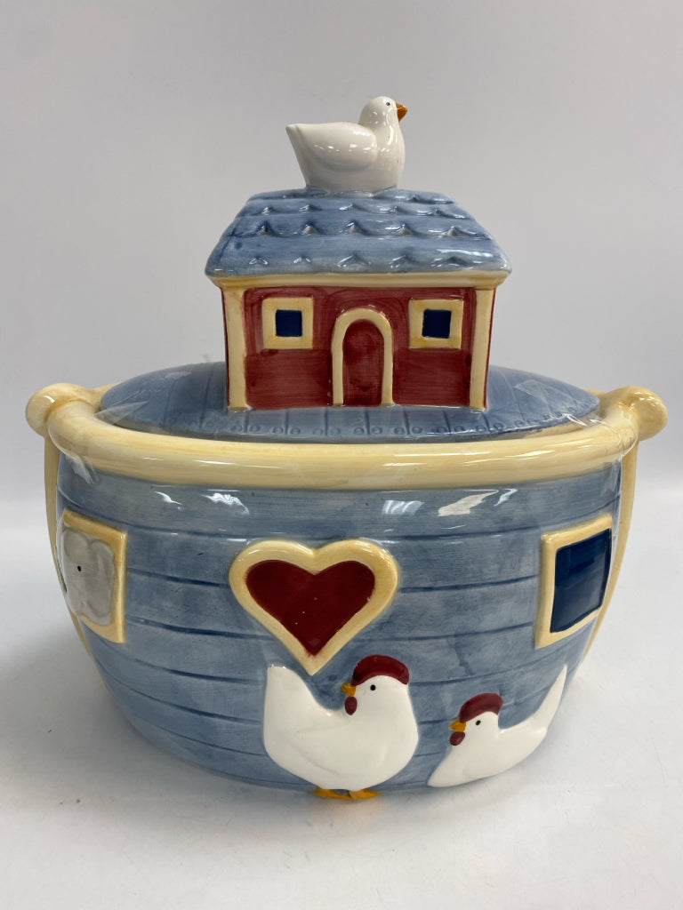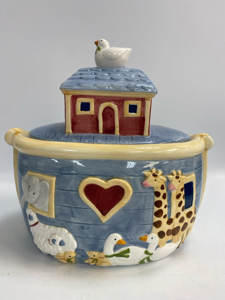 Blue/Taupe Multi Color Animals Ceramic Cookie Jar