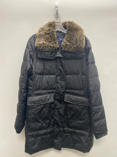 Lands End Size M Black Puffer Faux Fur Collar Ladies Coat