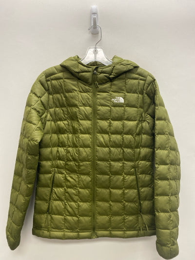 North Face Size M Cream/Brown Aqua Hooded Zip Down Ladies Coat