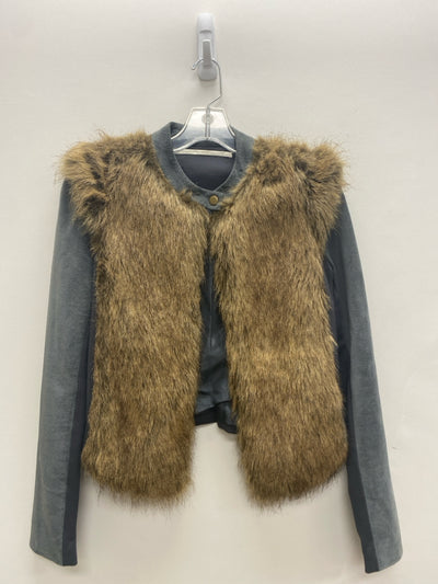 Size 6 Gray Brown Fuzzy Ladies Jacket