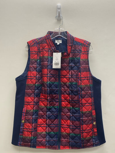 Kim Rogers Size XL Red Navy/Green Plaid Zip Down Ladies Vest