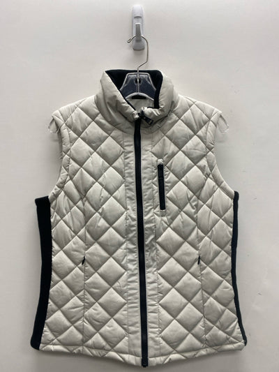 Andrew Marc Size M Pale Gray Black Trimmed Zip Down Ladies Vest